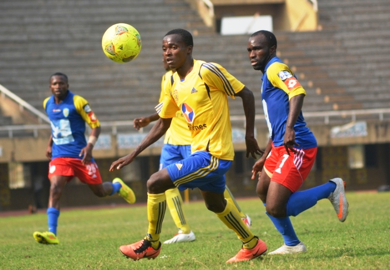 Simon Namwanja (left) playing for KCC against Cosmos De Bafia. He returns to the Bugonga ground, where he has played since childhood