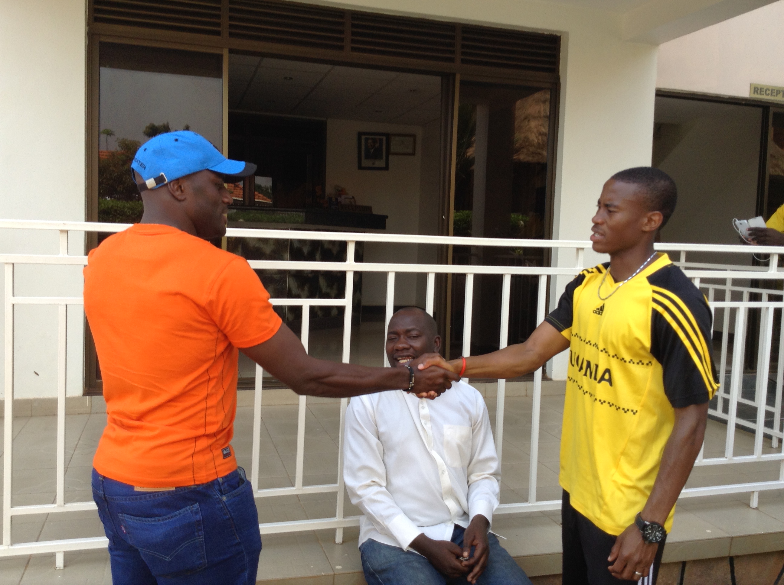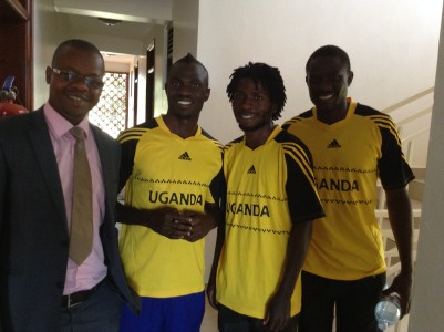 Magogo was flanked by the FUFA Finance Director Decolas Kiiza and Spokesperson Ahmed Hussein. The FUFA Vice President and chairman Technical committee Mujib Kasule also attended.