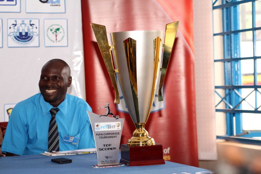 ← Previous image Trophy National Water and Sewage Corporation’s Fred Nsubuga smiles besides the trophy they target for the third year running