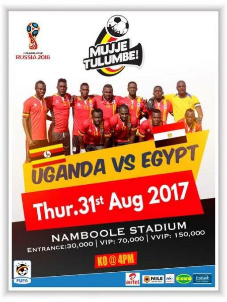 Federation of Uganda Football Associations (FUFA) will host the group D 2018 FIFA World Cup Russia group D qualifier between Uganda Cranes and the Egypt Pharaohs at the Mandela National Stadium, Namboole on Thursday, 31st August 2017.