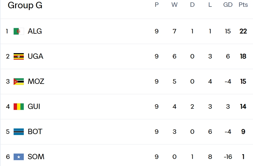 Uganda currently sit second in Group G with eighteen points, four behind Algeria who lead with twenty-two points. A positive result in Algiers would strengthen Uganda’s chances of finishing as one of the best second-placed teams and potentially advancing to the next qualification stage.