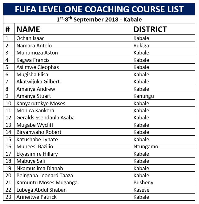 FUFA Beginners’ Coaching Course 9th-14th September in Kabale