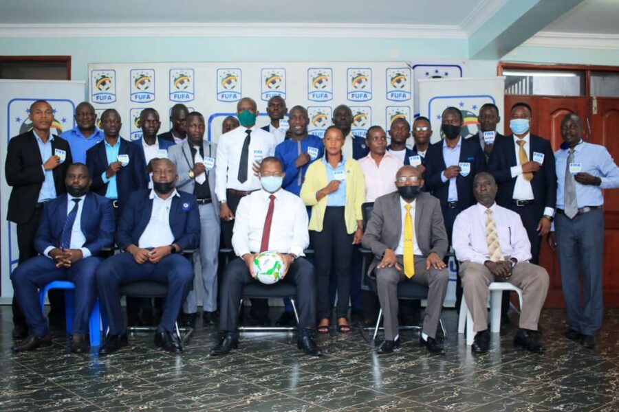 The 23 approved referees received their badges at a function conducted by the FUFA President Eng. Moses Magogo on Thursday 17th February 2022 at FUFA Complex in Mengo.