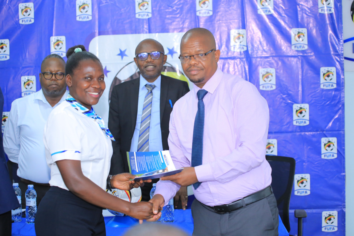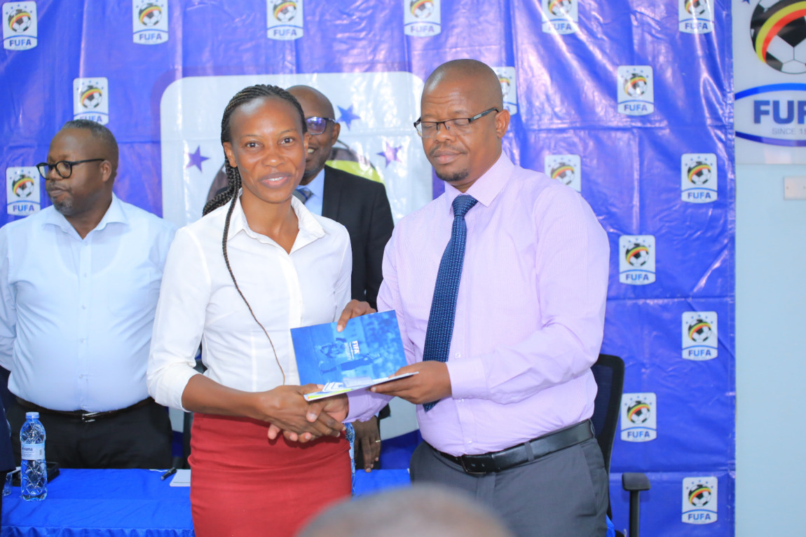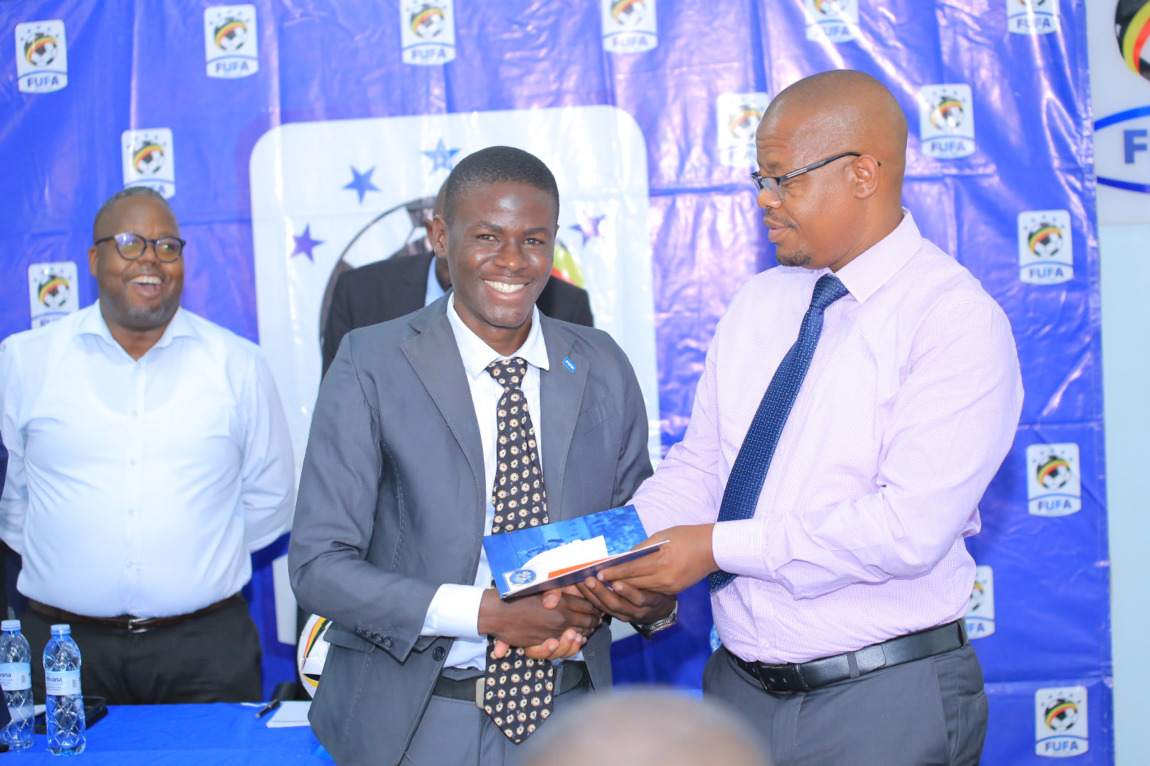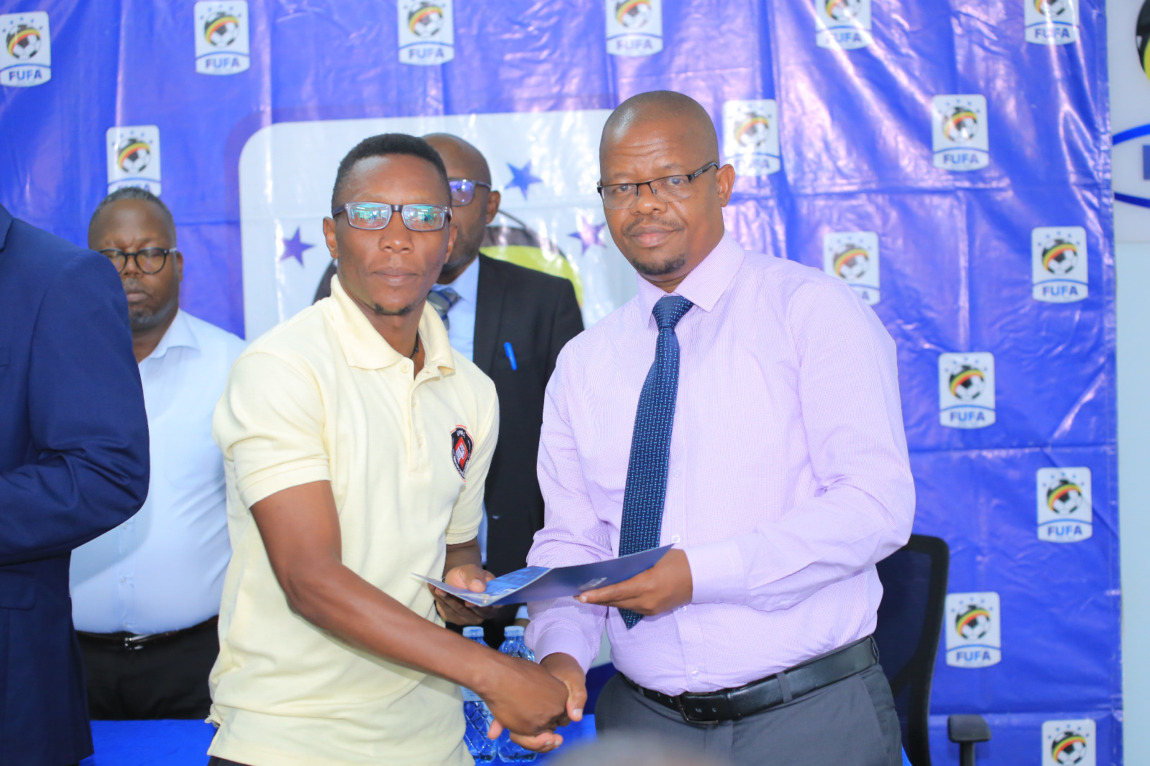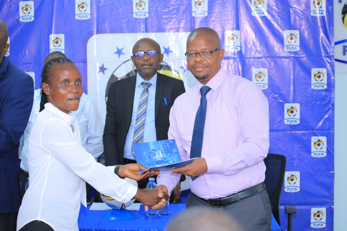 He was flanked by FUFA Executive Committee Member Rogers Byamukama, FUFA Deputy CEO-Football Decolas Kiiza and FUFA Referees Standing Committee Chairperson Brian Miiro Nsubuga.