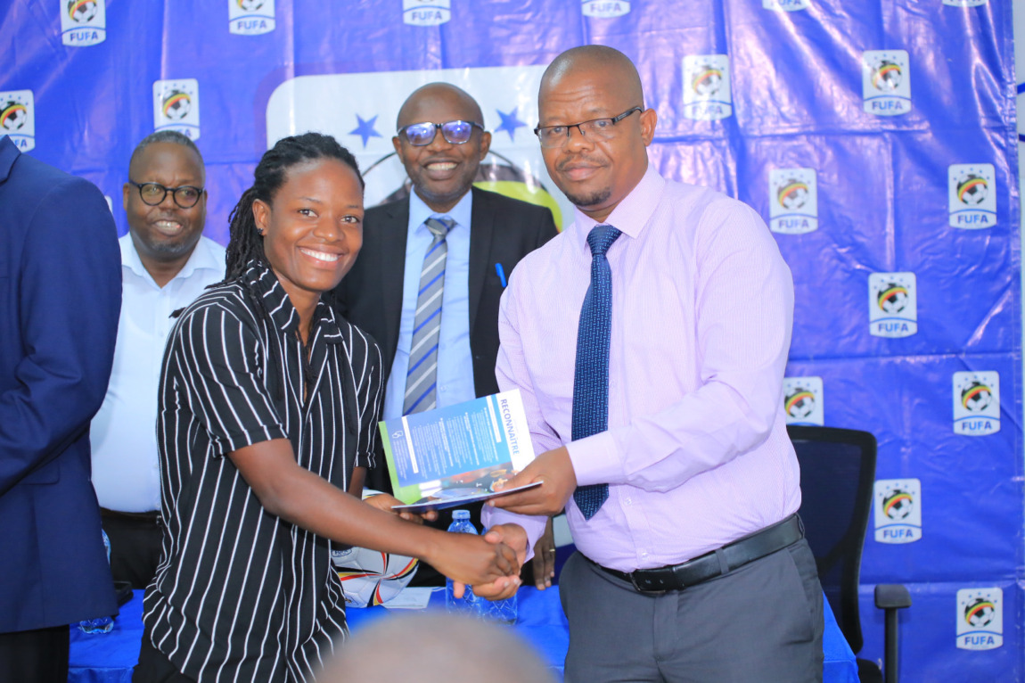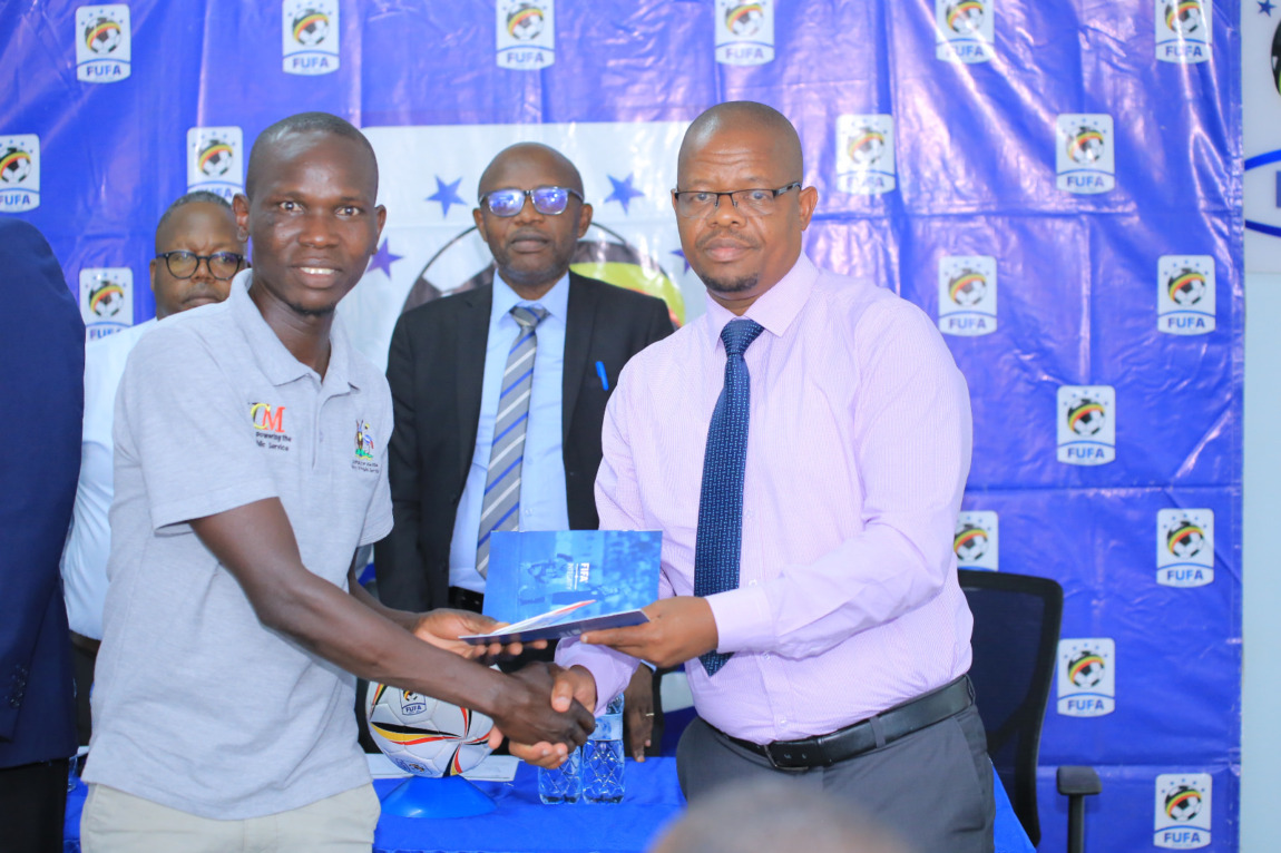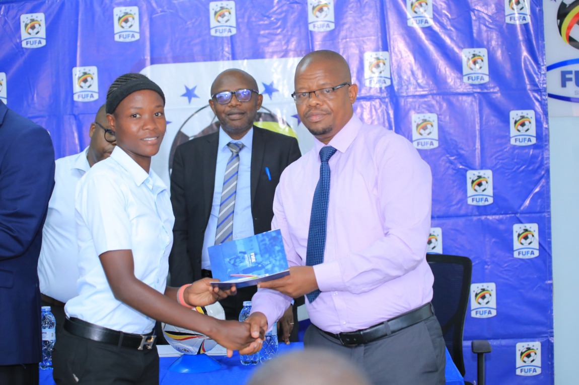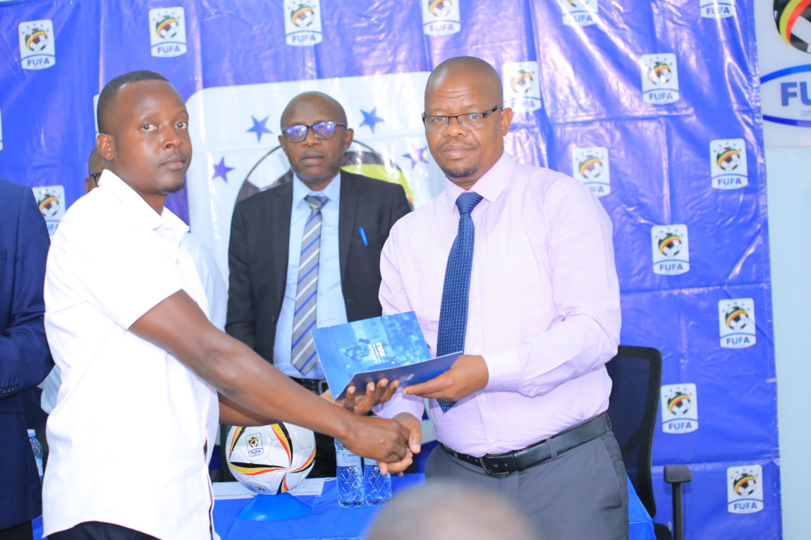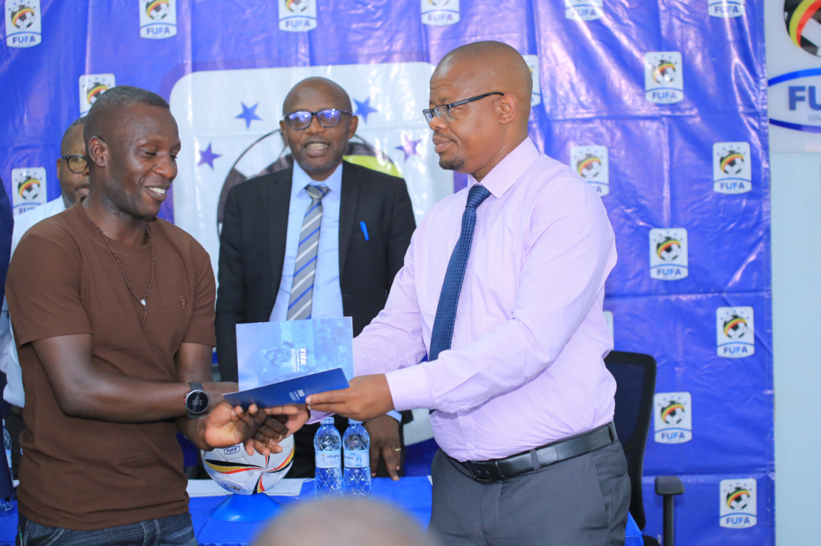 He was flanked by FUFA Executive Committee Member Rogers Byamukama, FUFA Deputy CEO-Football Decolas Kiiza and FUFA Referees Standing Committee Chairperson Brian Miiro Nsubuga.
