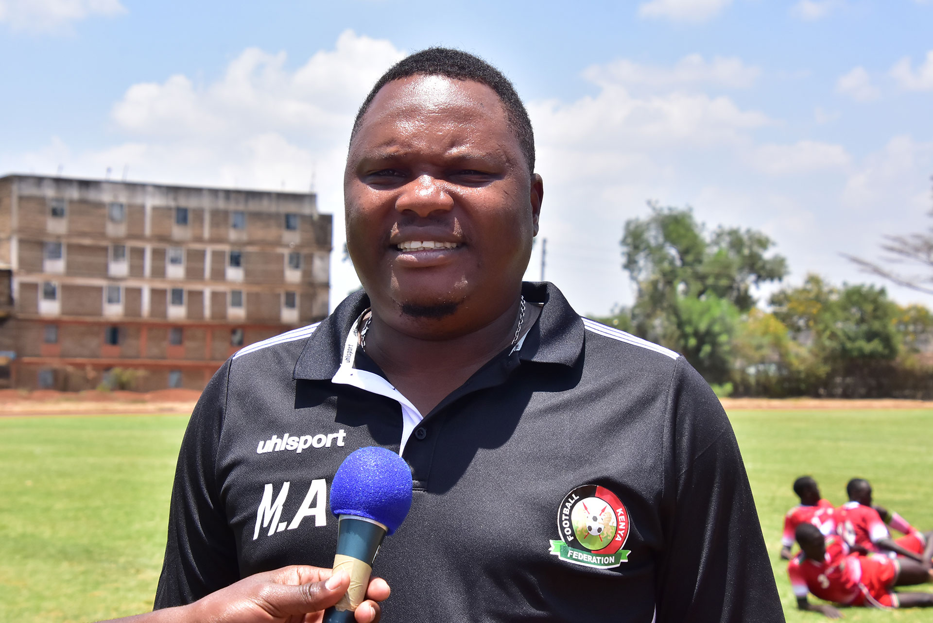 Kenya U18 Coach Micheal Amenga speaks to journalists after the match