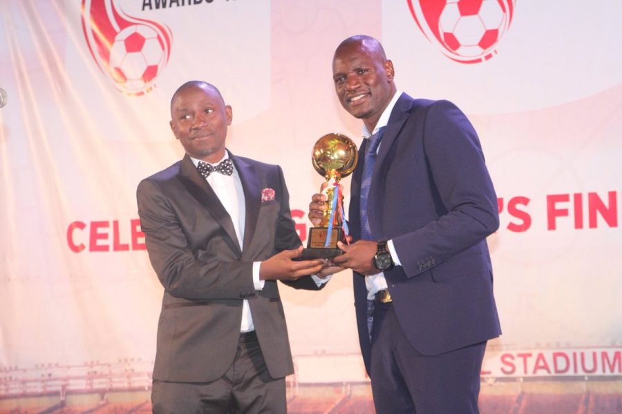 ← Previous image Next image → Aggrey Asaba hands over Onyango Aggrey Asaba hands over the award to Dennis Onyango