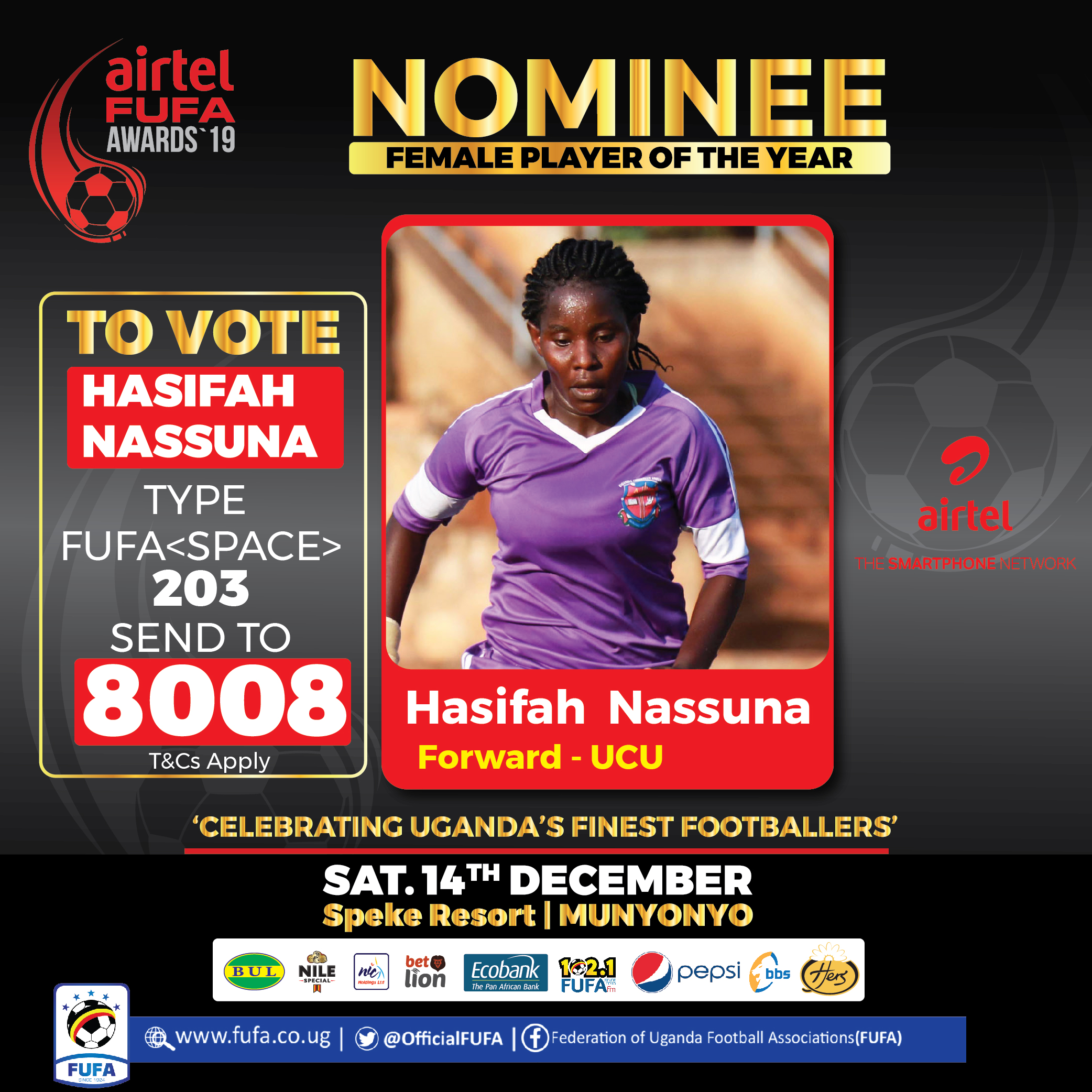 - Nassuna played a key role to help Uganda finish third at the CECAFA Women’s Challenge Cup, scoring three goals.