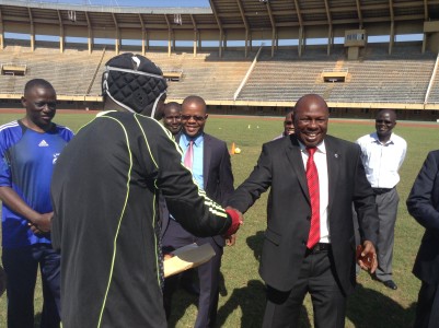 Bakkabulindi was received by the FUFA President Engineer Moses Magogo as the players continued with the tune up to the 2015 AFCON return leg second round qualifier with Magagascar on 31st May, 2014 at Namboole.