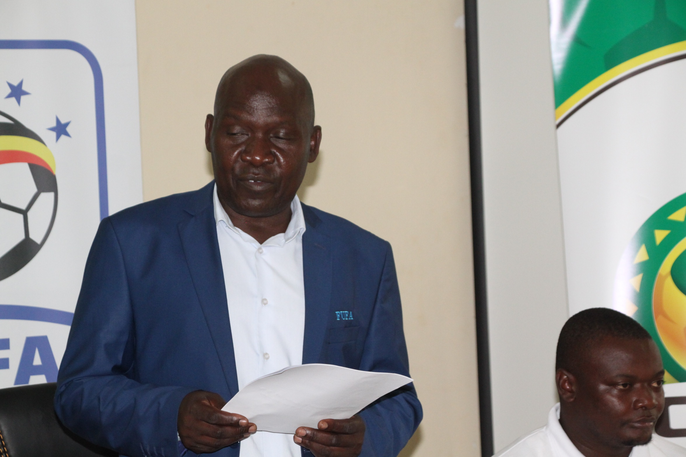 FUFA Executive Committee Member Issa Magoola talking to participants during the opening ceremony