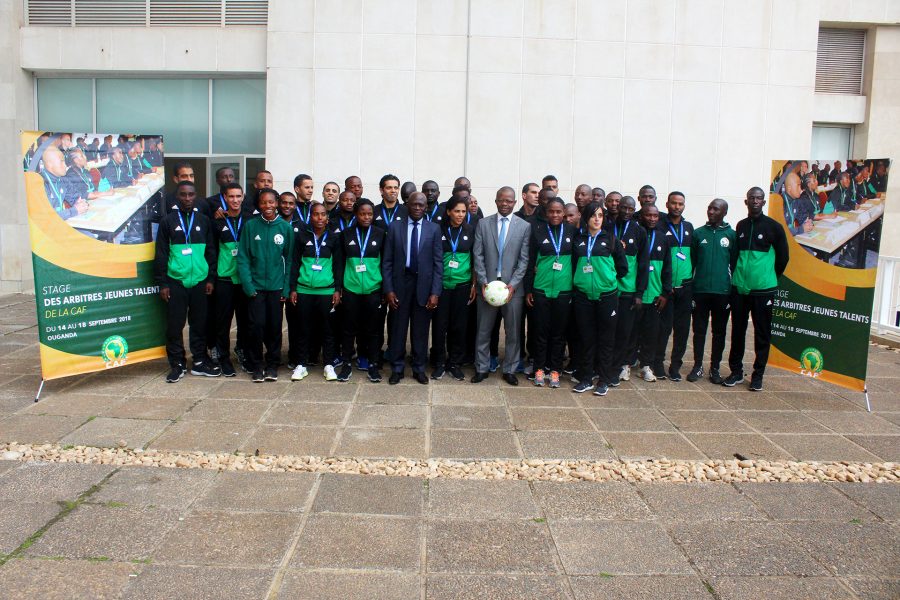 CAF Young Talent Referees’ Course Participants in a group photo during the opening ceremony at Sheraton Hotel in Kampala on Friday