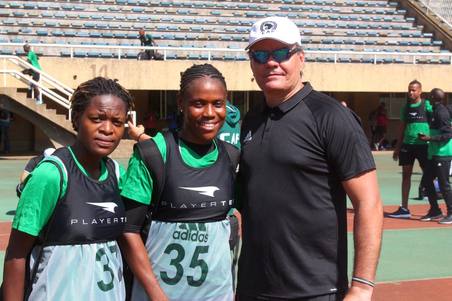 Female participants with CAF Instructor Eddy Maillet talking to the participants during the opening ceremony of CAF Young Talent Referees’ Course at Sheraton Hotel