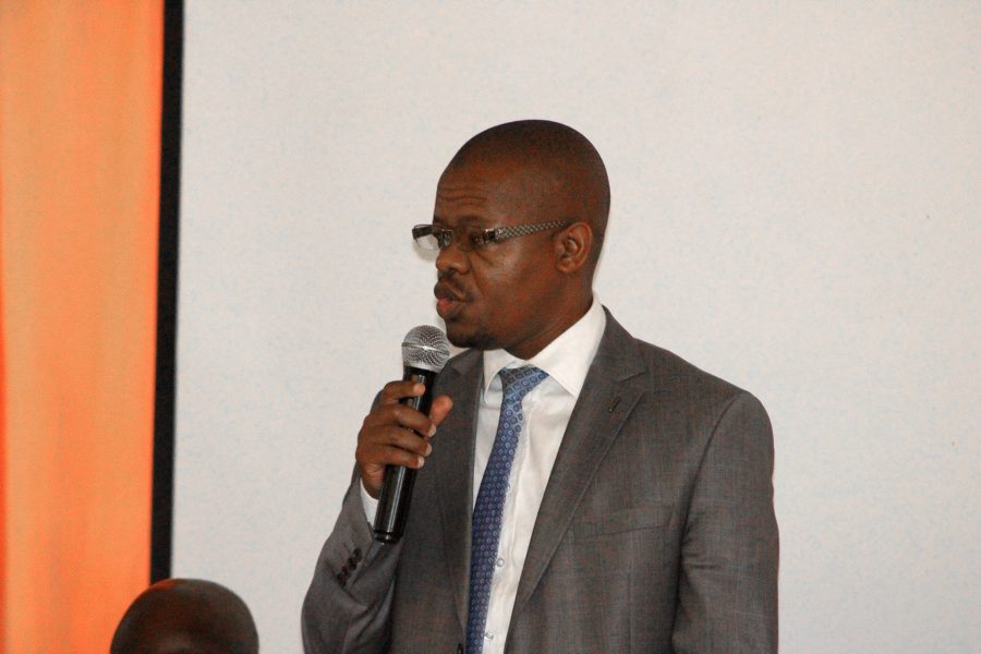 FUFA President Eng. Moses Magogo adressing referees duringthe opening ceremony of CAF Young Talent Referees’ Course at Sheraton Hotel in Kampala