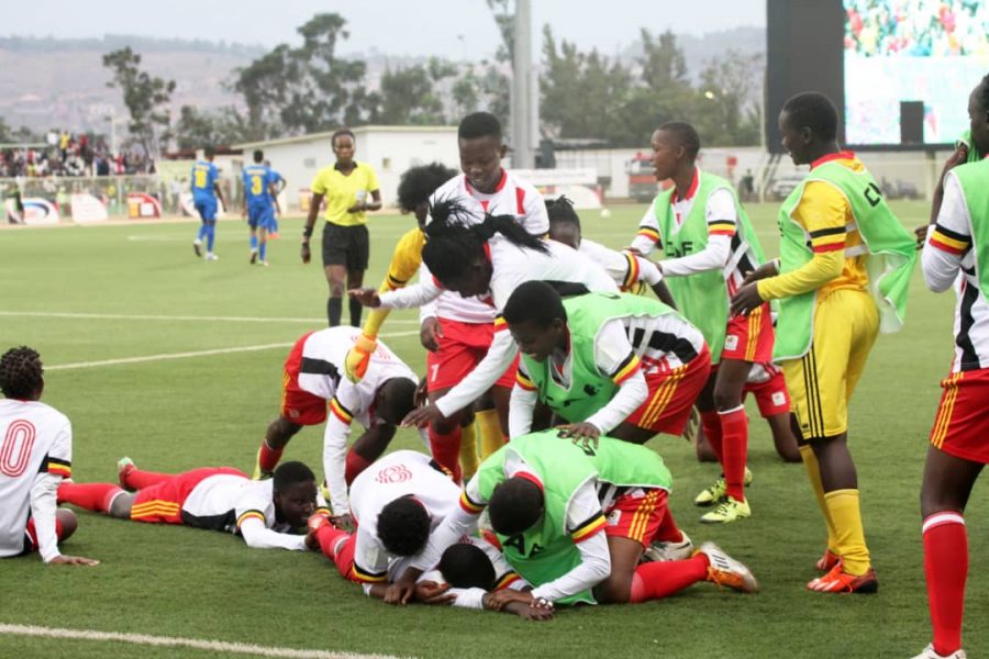 Crested Cranes players celebrate Lilian Mutuuzo’s goal in style