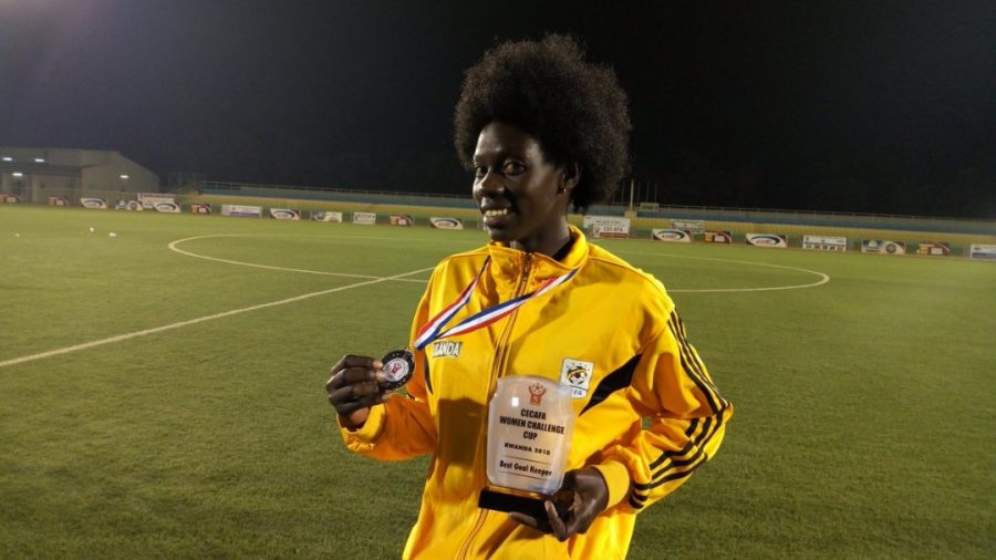Uganda Crested Cranes goalkeeper Aturo Ruth posing with her award during the closing ceremony of CECAFA Women Challenge Cup