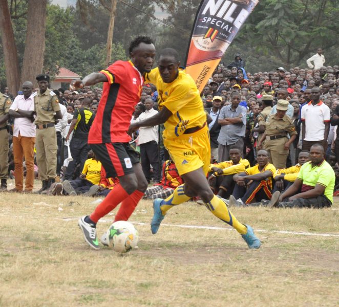 Uganda Cranes Right Full back Nicolas Wadada (Red) in action during the match against Western Region at Kabale Municipal Stadium in 2017