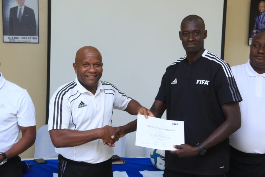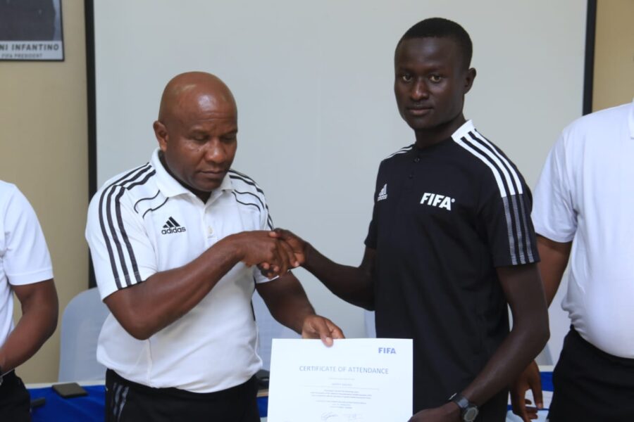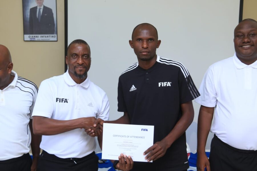 The referees went through theory and practical sessions during their stay in Njeru, with FIFA technical instructor Jason Joseph Damoo from Seychelles and FIFA fitness instructor Mark Mzengo from Malawi handling the course.