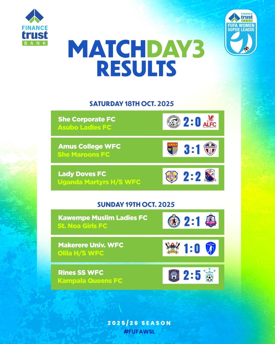 The weekend once again delivered thrilling action, plenty of goals and stunning moments that have shaken up the standings. Kawempe Muslim Ladies FC, Kampala Queens FC and She Corporate FC secured crucial victories to level on seven points at the summit and assert early dominance. As early contenders, they are setting the pace but the chasing pack remains close, ensuring the battle for the top positions will be intense.