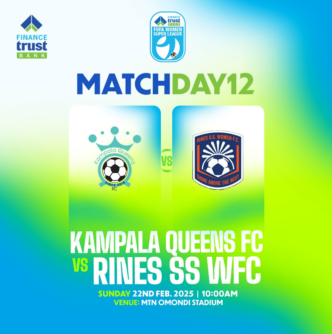On Sunday, third-placed Kampala Queens FC entertain Rines SS WFC at MTN Omondi Stadium. The queens will be targeting maximum points to close the gap on top, while Rines, currently on 11 points, aim to climb away from the danger zone.