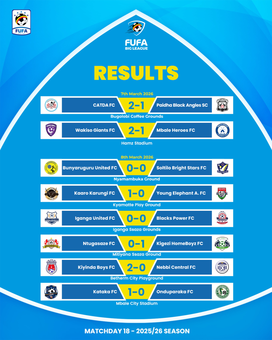 Earlier in the round, CATDA FC defeated Paidha Black Angels SC 2–1 at Bugolobi Coffee Grounds.