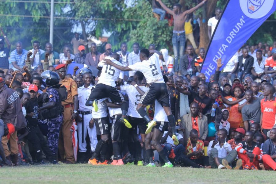 West Nile players join Richard Agau to celebrate their lone goal at Pece Stadium, Gulu