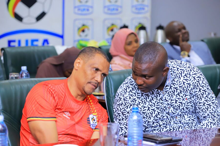 FUFA CEO, Edgar Watson and FUFA Executive Committee Member, Ronnie Kalema having a discussion.