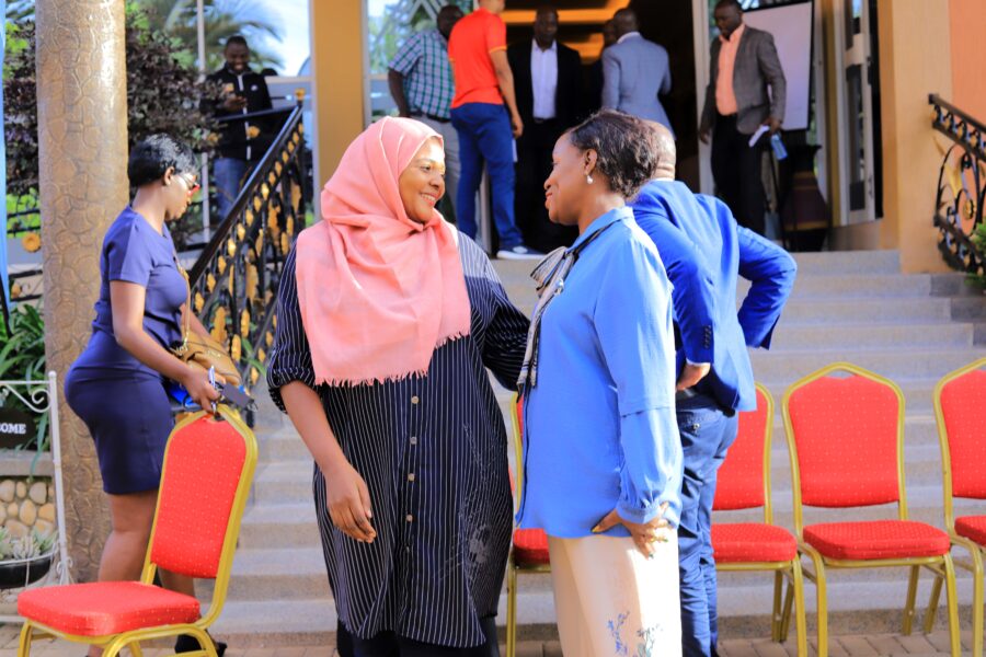 Dr. Azar Taib (left) having a chat with FUFA 3rd Vice President, Hon. Florence Nakiwala Kiyingi after the retreat.