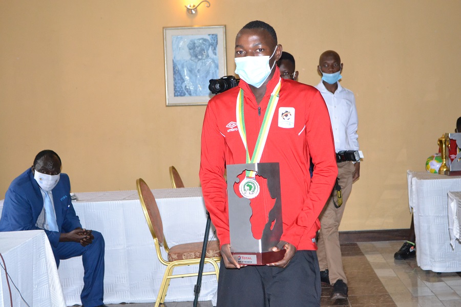 Isma Mugulusi shows off the man of the match accolade he earned at AFCON U-20 championship