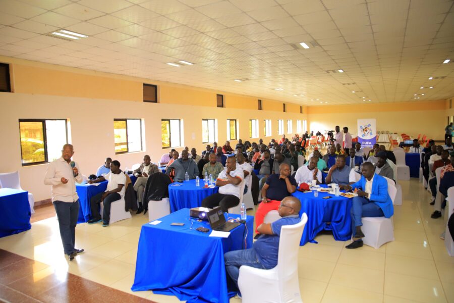 FUFA President lecturing during the launch of the FUFA Community Clubs Programme at Acholi Inn.