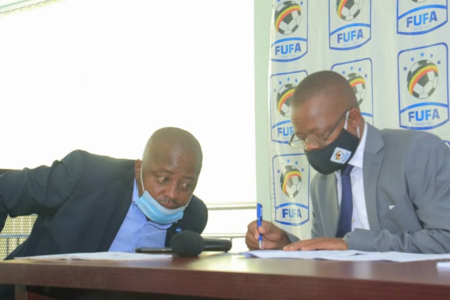 ← Previous image Next image → IMG-20200618-WA0055 FUFA 2nd Vice-President, Darius Mugisha (Left) consulting with FUFA President, Moses Magogo during the meeting.
