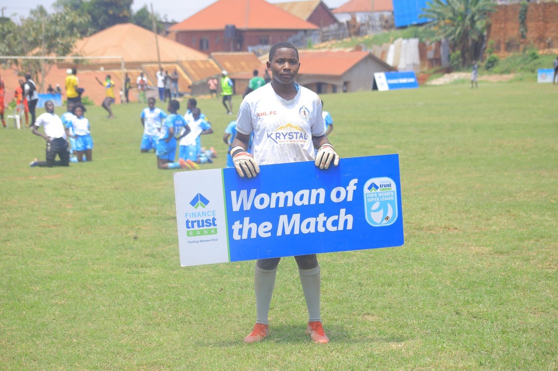 Kawempe Muslim Ladies FC goalkeeper Saidat Namwanje was named the Finance Trust Bank Woman of the Match after her heroic display helped the Warriors secure a 2-1 victory against rivals St Noa Girls Zana FC at Kawempe Muslim SS Ground on Sunday.