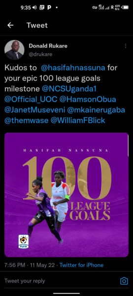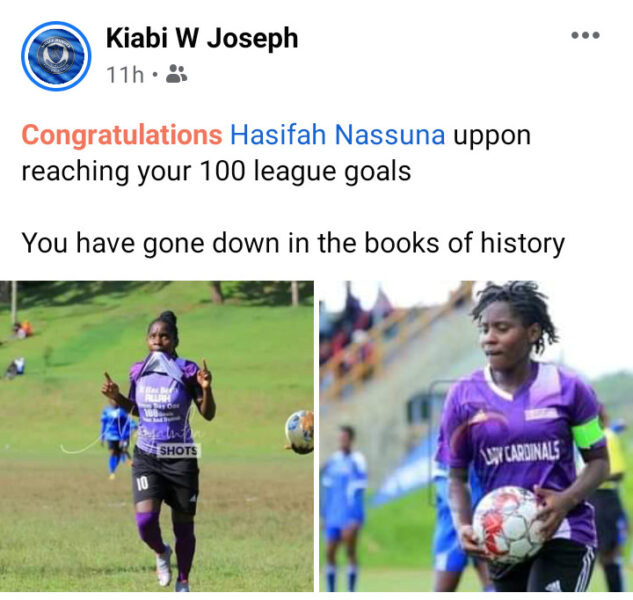 Social Media platforms continue to be awash with praise towards Hasifa Nassuna for having reached a century of League goals.