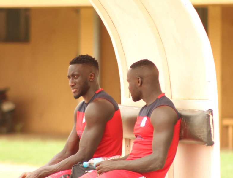 Uganda Cranes players Moses Opondo and Bevis Mugabi relaxing during after training in Niger on Tuesday 29th May(File Photo)