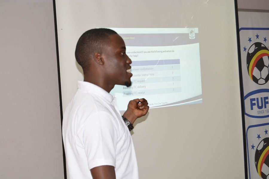 Decolas Kiiza (FUFA Deputy CEO -Football), Hajjat Aisha Nalule (FUFA Competitions Director), Ahmed Hussein (FUFA Communications Director), Denis Lukambi (FUFA Legal Manager), and Emmanuel Kazoora (IT Manager) were the the Instructors