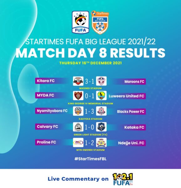 In other games, Proline FC fell to Ndejje University 2-1 at the Omondi Stadium while Nyamityobora lost 1-3 to visitors Blacks Power at the Kakyeeka Stadium in Mbarara.