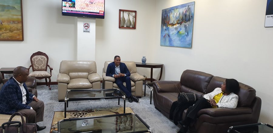 ← Previous image Next image → L-R; Justu Mugisha (FUAF Vp1), Fatma Samoura (FIFA Secretary General) Ahmed Hussein (FUFA Communications Director (1)