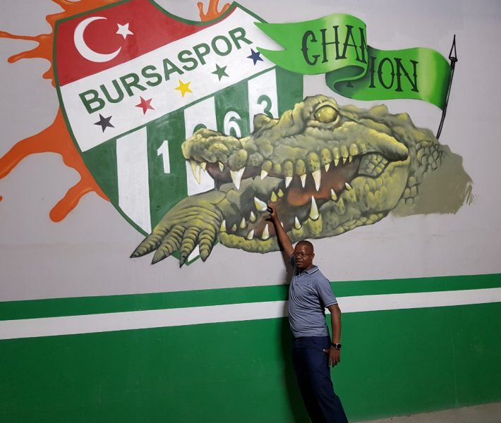 ← Previous image Next image → Eng Magogo touches Crocodile Eng. Moses Magogo during a guided tour around the Timsah Arena, the home of Bursaspor Football Club