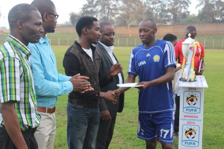 URA Skipper Simeon Masaba receiving the cash prize.