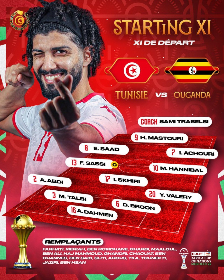 Played in heavy rain, the match saw Tunisia take an early lead in the 10th minute through Ellyes Skhiri, who headed home from a corner delivered by Hannibal Mejbri. Uganda responded with increased organisation as the half progressed but Tunisia doubled their advantage shortly before the interval, with Elias Achouri finishing first time from a cross by Ali Abdi.