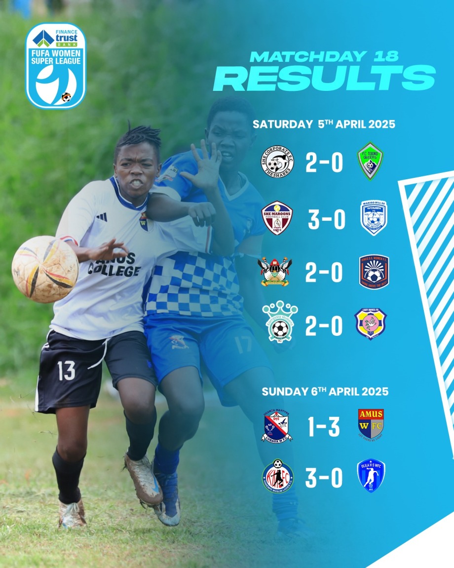 Amus College WFC stunned their hosts Uganda Martyrs Ladies serve the surprise of the weekend. The Kiddawalime girls who have been a different animal in the second round getting results for fan, crambled in front of their own fans thanks to goals from Nambozo Zabinah, Opisa Shalyne and Kainze Joyce. Latifah Nakasi scored the consolation goal for the home side.