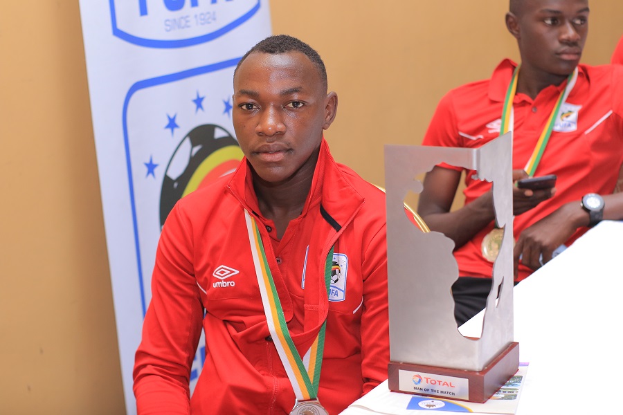 Isma Mugulusi poses with an accolade for player of the match he got at the U20 AFCON tournament.