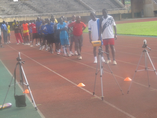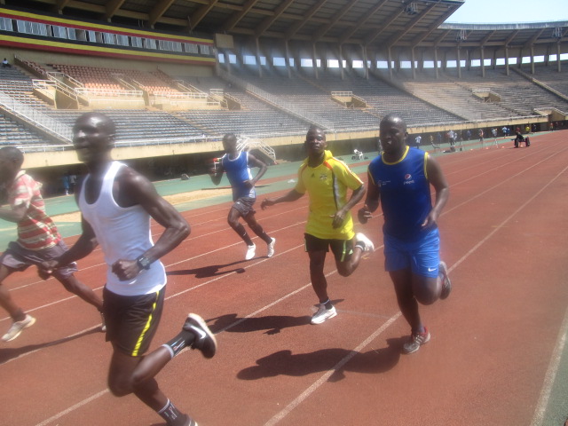 Main Photo: FUFA Referee, Fred Mpiima gets off the blocks during the short sprints at the national trials on Saturday morning.