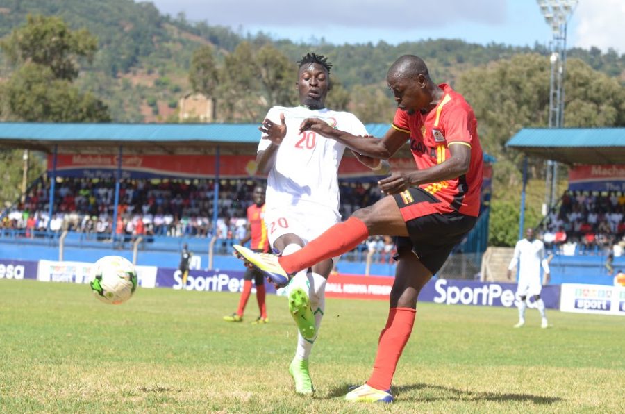 Habib Kavuma with a clearence during the game against Kenya. He is one of the players maintained on the team
