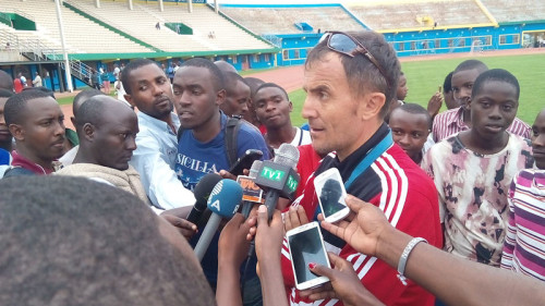 MAIN PHOTO: Micho talking to the media after Kobs’ training on Friday at the Amahoro Stadium.