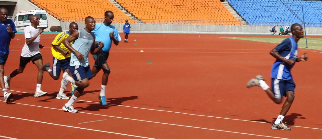 ← Previous image Next image → sonko Uganda’s assistant Referee Mark Sonko leading other participants during the last lap