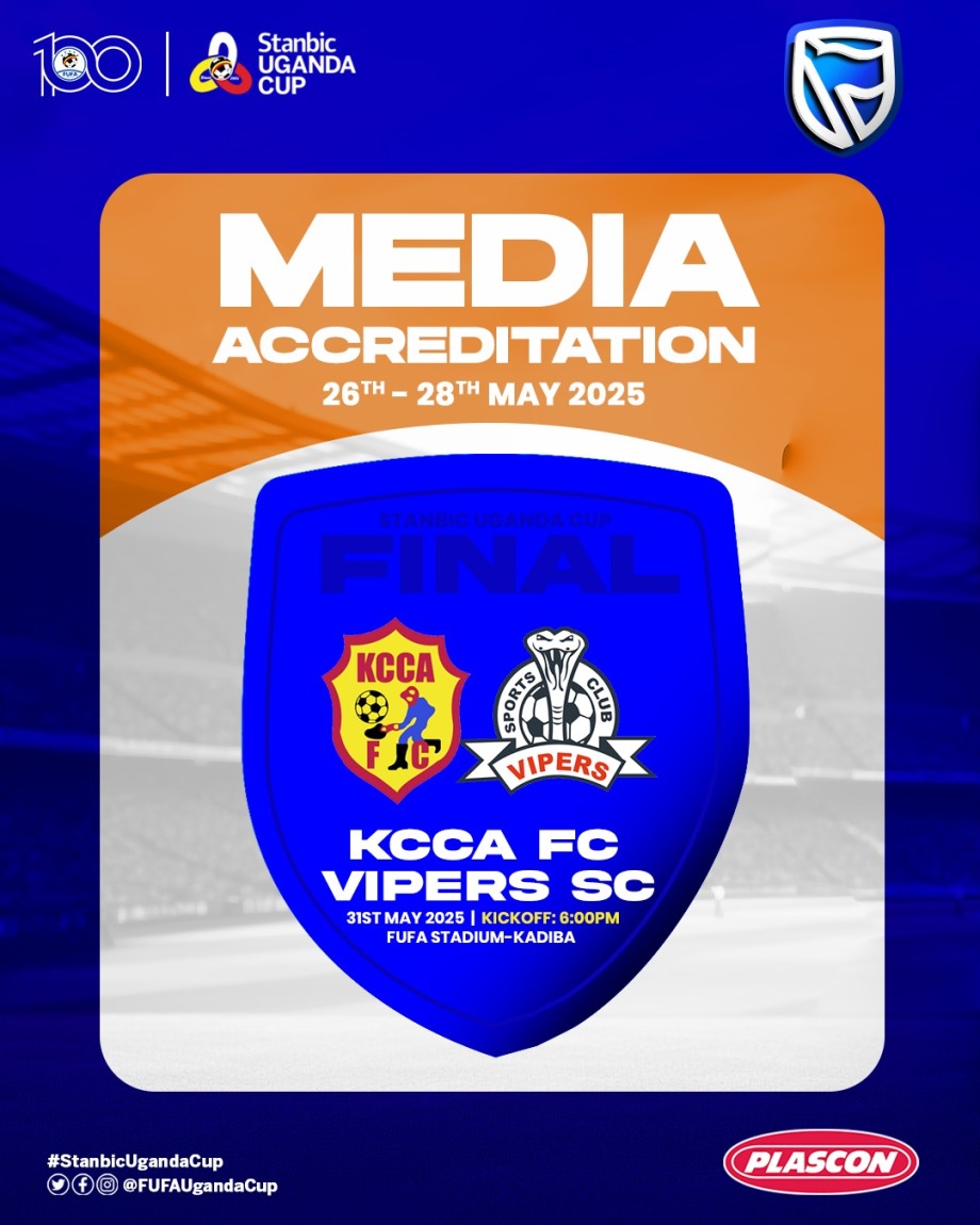 FUFA wishes to inform members of the sports media that the application process for accreditation to cover the Stanbic Uganda Cup match between KCCA FC and Vipers SC at FUFA Stadium, Kadiba, on the 31st May 2025 is now open via the FUFA Media Channel on https://fufa.co.ug/media/login/