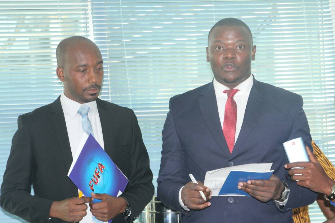 FUFA Competitions Director Ali Mwebe (R) read out the guidelines for the round of 32.