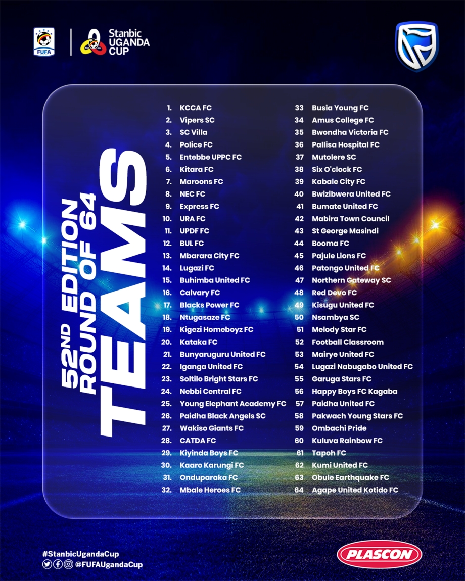 A total of 64 clubs will be involved at this stage, including Uganda Premier League sides, FUFA Big League teams, representatives from regional competitions and a non-league team across the country.