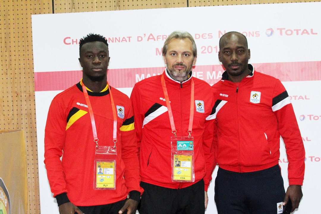 L-R FUFA President Eng. Moses Magogo with the team Doctors Kisolo Ronald and Ivan Sewanyana at the training in Marrakech