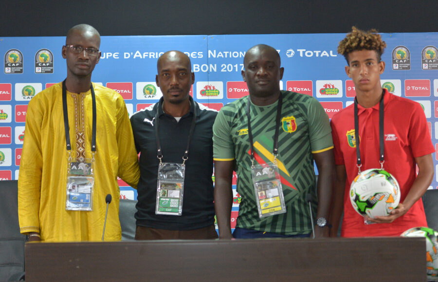 Ahmed Hussein (second left) during the 2017 Under 17 Africa Cup of Nations Finals Mali press conference at the Libreville Stadium in Gabon on 19 May 2017 ©Samuel Shivambu/BackpagePix